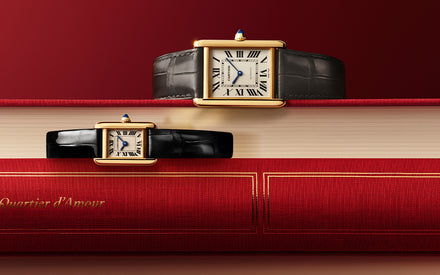 Created by Louis Cartier, the Tank watch is defined by its precise vertical brancards and a sapphire cabochon.