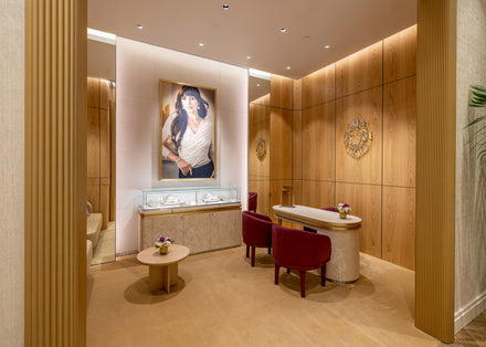 20 Hudson Yards #RU120B, New York, NY 10001Located alongside the fabulous Watches of Switzerland showroom inside the Hudson Yards Mall, a premier destination for shopping, dining and culture on Manhattan's west side, this Roberto Coin boutique is one of three freestanding locations in the U.S.. Boasting of a sleek contemporary design with sumptuous wall coverings, a striking Murano glass chandelier, ruby-upholstered furnishings and a VIP room in the brand's signature colors to preserve the DNA and essence of the Venetian designer, every detail in this 1000-square-foot space is crafted to captivate clients with stunning pieces and deliver unparalleled elegance.