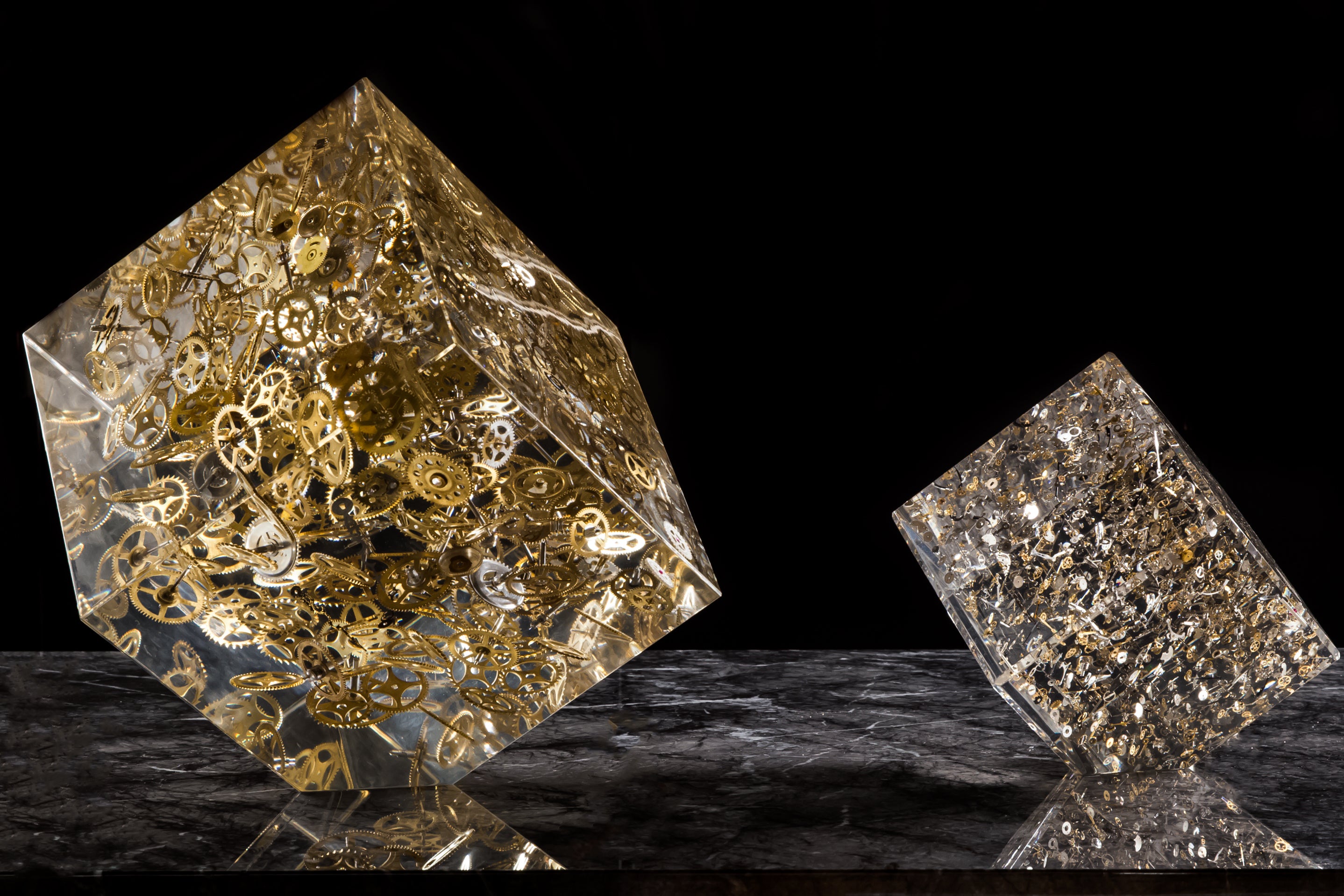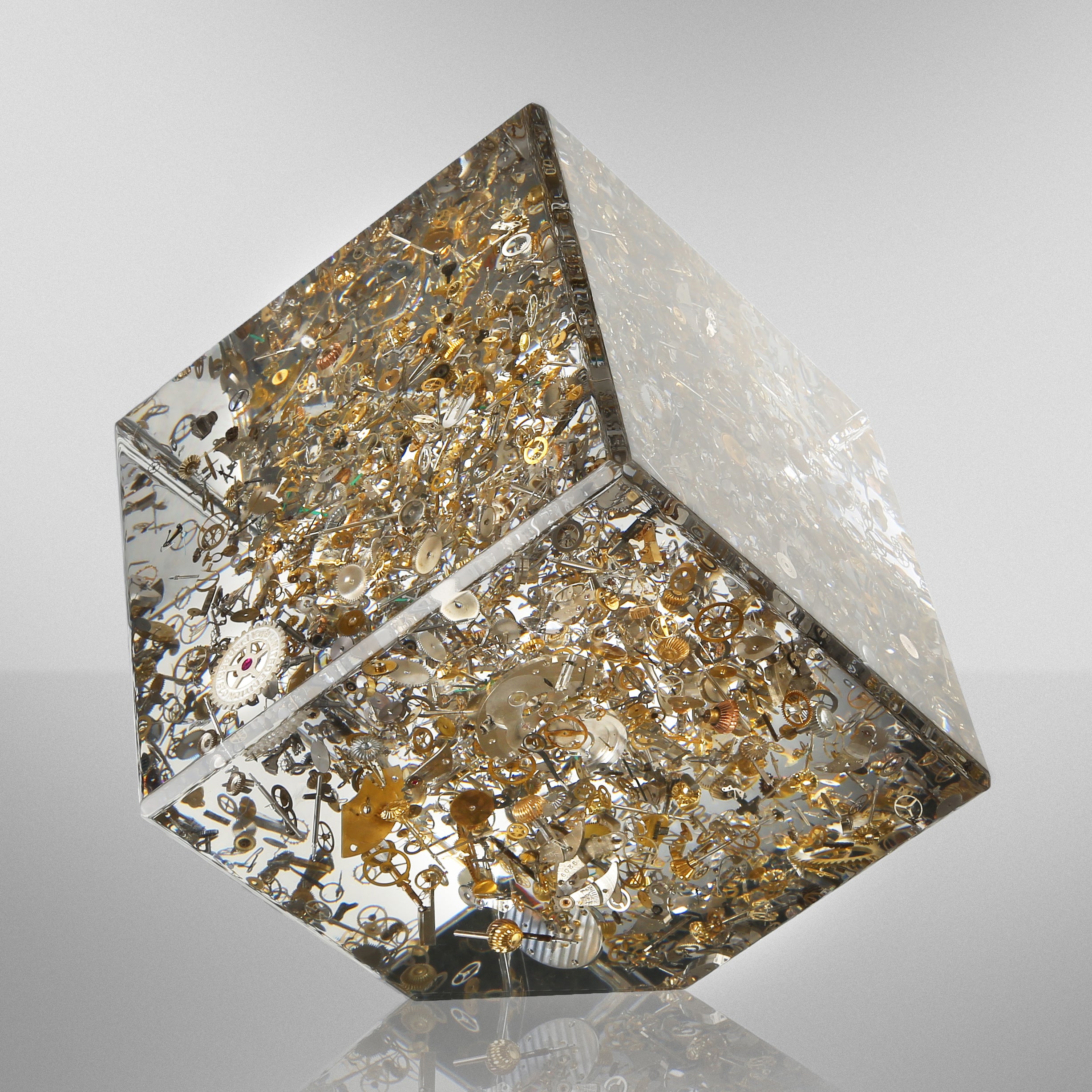 Structured integrity: the Time Squared sculpture appears to tumble through time, resting remarkably mid-air a spectacular angular display of the watch components meticulously arranged in abstract formations.