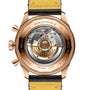Super Avi - Breitling's tribute to legendary aircraft Inspired by the spirit of early aircraft and the design of the P-51 Designed to withstand the rigors of a vintage cockpit Black dial framed by a knurled bezel B04 calibre GMT Chronograph movement with 70hrs of power reserve and 10 bar (100 metres) water resistance AVIATION HERITAGE Super Avi, the newest watch series from Breitling, is a celebration of aviation history with designs inspired by four legendary aircraft. This P-51 Mustang model honours the P-51, which was built in just 120 days and became a true powerhouse of the aviation world. With low-drag wings and an engine cooling system, the revolutionary aircraft had unprecedented speed and range, while the Merlin engine allowed incredible performance even at high altitudes. A true pilot's watch, the Mustang timepiece offers optimal grip for operation by gloved hands, sizeable numerals that can be spotted with ease, and an additional hand indicating a second time zone. A WATCH FOR ADVENTURERS A chronometer certified by the COSC, this 46mm 18K red gold model is presented on a black leather strap with white topstitching to honour the seams found on classic flight gear. Framed by a knurled bezel, the black dial presents red gold hands, highly legible Arabic numerals, a date display, and three sub-dials. Pilots and other travellers will appreciate the ability to track a second time zone using the 24-hour marking on the inner bezel and the red tipped GMT hand. The Breitling B04 calibre movement provides power and precision to this exceptional timepiece.