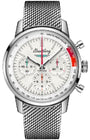 Elevate your style game with the brand new and authentic Breitling Top Time B01 Ford Thunderbird Automatic Chronograph Fashion Watch. Embrace the luxurious brushed and polished stainless steel case and mesh bracelet, complete with a smooth bezel and Luminous Silver Tone Hands. With a Swiss Automatic Chronograph movement and Breitling Caliber 01 engine, this watch offer s 70 hours of power reserve and functions including Hour, Minute, Second, Power Reserve, Chronograph, and Speed. Featuring 3 sub-dia ls, a scratch-resistant sapphire crystal, and water resistance up to 100 meters, this watch is a true must-have for any watch enthus iast. Embrace the sleek and sophisticated design of this 41mm round case, 13.3mm case thickness, and transparent case back, and make a bold statement wherever you go.