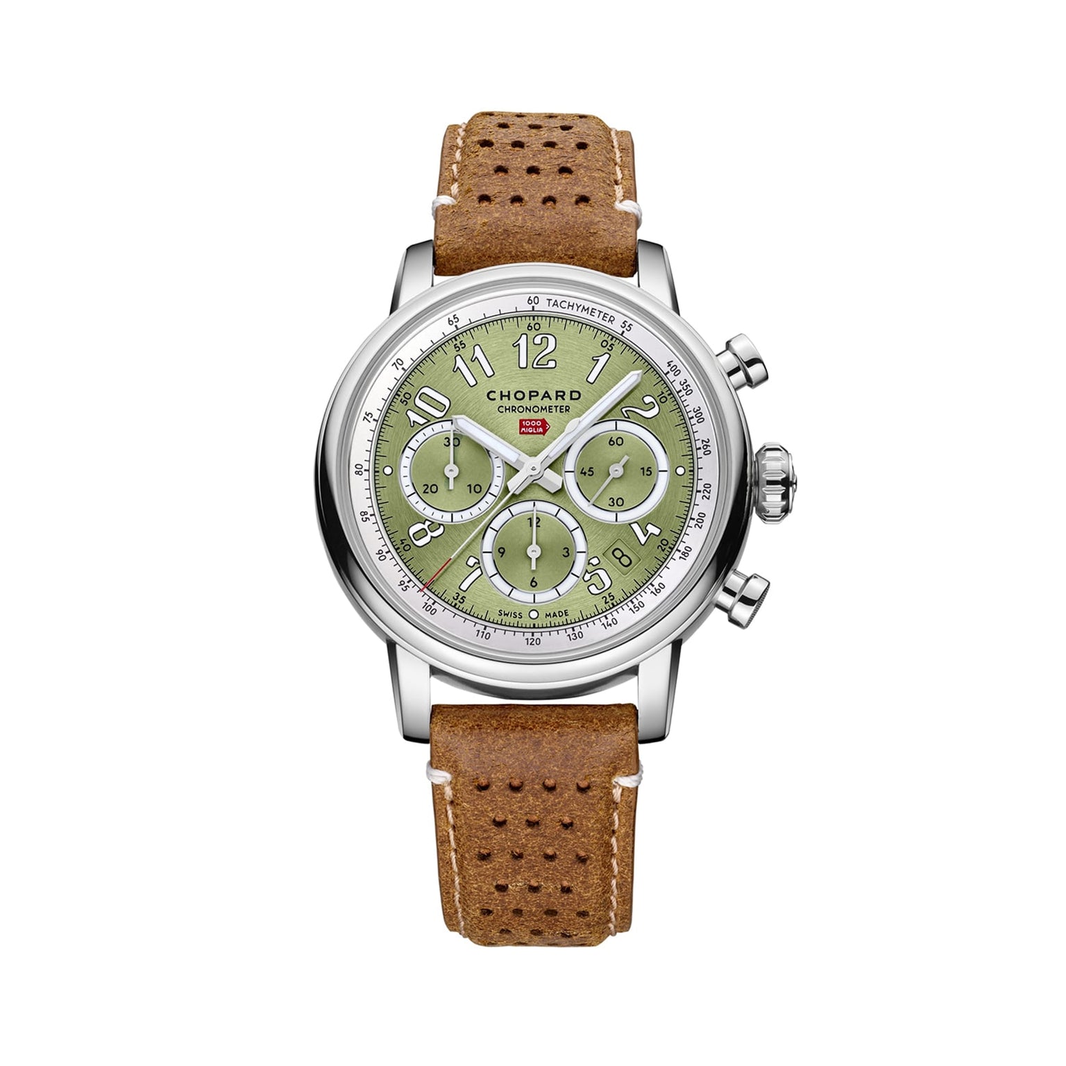 For 35 years, Chopard's heart has been beating in sync with that of the 1000 Miglia. As the official timekeeper of the most renowned classic car race in the world, Chopard presents the Mille Miglia Chronograph watch. It is a testamen t to their shared admiration for exquisite engineering and exceptional performance, fueled by Karl-Friedrich Scheufele's deep love f or cars and racing.