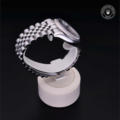 Elegant and timeless, the Oyster Perpetual Datejust is the epitome of the classic watch by Rolex. Launched in 1945, it was the first self-winding waterproof chronometer wristwatch to display the date in a window at 3 o’clock on the dial. The Datejust is offered in Oystersteel, in versions combining Oystersteel and yellow, white or Everose gold, or entirely in 18 ct gold, with a large variety of dials, bezels and bracelets. It is also available in diamond-set versions.