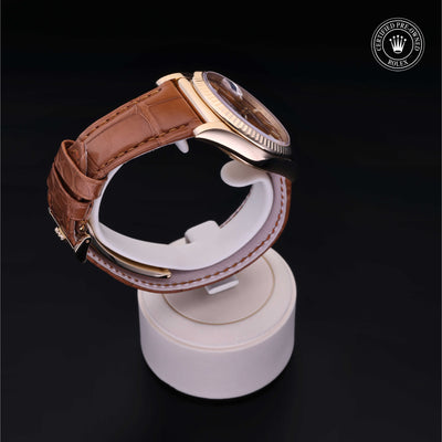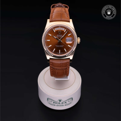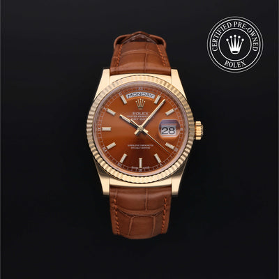 The Oyster Perpetual Day-Date, available only in 18 ct gold or 950 platinum, embodies the essence of Rolex prestige and excellence. At its launch in 1956, it was the world’s first calendar wristwatch to indicate, in addition to the date, the day of the week spelt out in full in a window on the dial – a major watchmaking innovation.