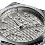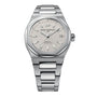 The Girard-Perregaux Laureato 42 is a stainless steel watch featuring an octagonal bezel, silver textured dial, date display at 3 o’clock, and a metal link bracelet.