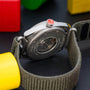 The Louis Erard Le Régulateur x Alain Silberstein Khaki merges cutting-edge design with S wiss watchmaking excellence in a striking limited edition of just 178 pieces. The 40mm microblasted titanium case houses a distincti ve khaki dial featuring Silberstein's iconic red hour hand, white minute hand, and playful yellow serpentine second hand. This regul ator-style masterpiece is powered by the precise Sellita SW266-1 automatic movement with a 38-hour power reserve, visible through th e transparent caseback that reveals the decorated oscillating weight with Louis Erard's black lacquered emblem. The comfortable khak i nylon strap with titanium buckle completes this exceptional timepiece that represents the perfect marriage of artistic vision and horological craftsmanship.