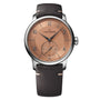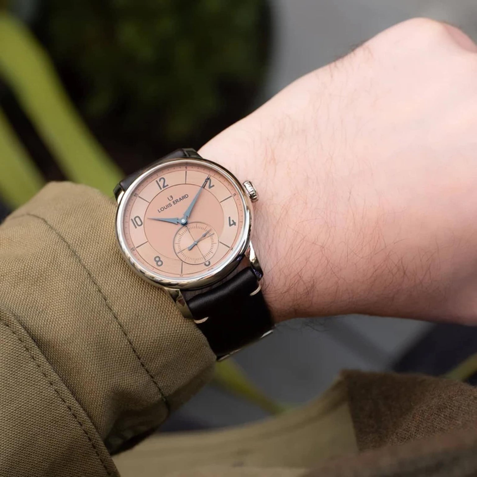Earthy hues. Subdued finishes. The Excellence Petite Seconde returns with its captivating Terr acotta edition. This timepiece marries southern warmth with the gentle essence of Franches-Montagnes trails—the birthplace of Louis Erard craftsmanship. This highly anticipated release comes in classic 42 mm and elegant 39 mm cases, with production limited to roug hly 100 pieces annually per reference. Experience the interplay of delicate tonal variations where no glossy elements interrupt the hushed harmony. The single-color dial accentuates design intricacies, juxtaposing circular satin finishing against fine-grained cent er and minute track areas. The snailed seconds counter at 6 o'clock stands as a distinctive focal point.