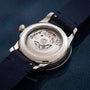 Louis Erard introduces a stunning addition to their Excellence collection with the Petite Seconde in captivating midnight blue. This prestigious timepiece now comes in a refined 39 mm steel case, joining purple and ice blue variants in embodying contemp orary high-end watchmaking aesthetics. The midnight blue edition revives a timeless classic, pairing perfectly with its elegant grai ned calf leather strap featuring tone-on-tone attachment points and matching blue grained calf leather lining—a signature Louis Erar d detail. Experience the return of this distinguished color that has long defined luxury watchmaking excellence.
