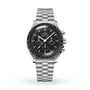 Presented on a brushed five-arched-links-per-row bracelet, this 42 mm Moonwatch in stainless steel features hesalite glass on the front and an embossed Seahorse medallion on the caseback. Inspired by the 4th generation Speedmaster style worn on the moon, it also includes an asymmetrical case, black step dial and the famous dot over 90 on the anodised aluminium bezel ring.