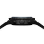 Side view of the TUDOR Black Bay Chrono wristwatch in black, featuring two buttons, a textured crown, and a black strap.
