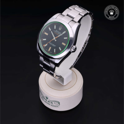 The Oyster Perpetual Milgauss was created for those whose work brings them into contact with magnetic fields that disrupt mechanical watches. It was designed to resist interference of up to 1,000 gauss, a measurement formerly used for magnetic induction, hence its name (mille meaning a thousand in French). The Milgauss, unveiled in 1956, highlights the historic links between Rolex and scientific research. It maintains exceptional chronometric performance thanks to a a patented magnetic shield that protects the movement.