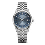 The Raymond Weil Freelancer Automatic Blue Dial watch features a sunray blue dial, date display, silver hour markers, metal link bracelet, and is powered by a Swiss automatic movement.