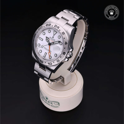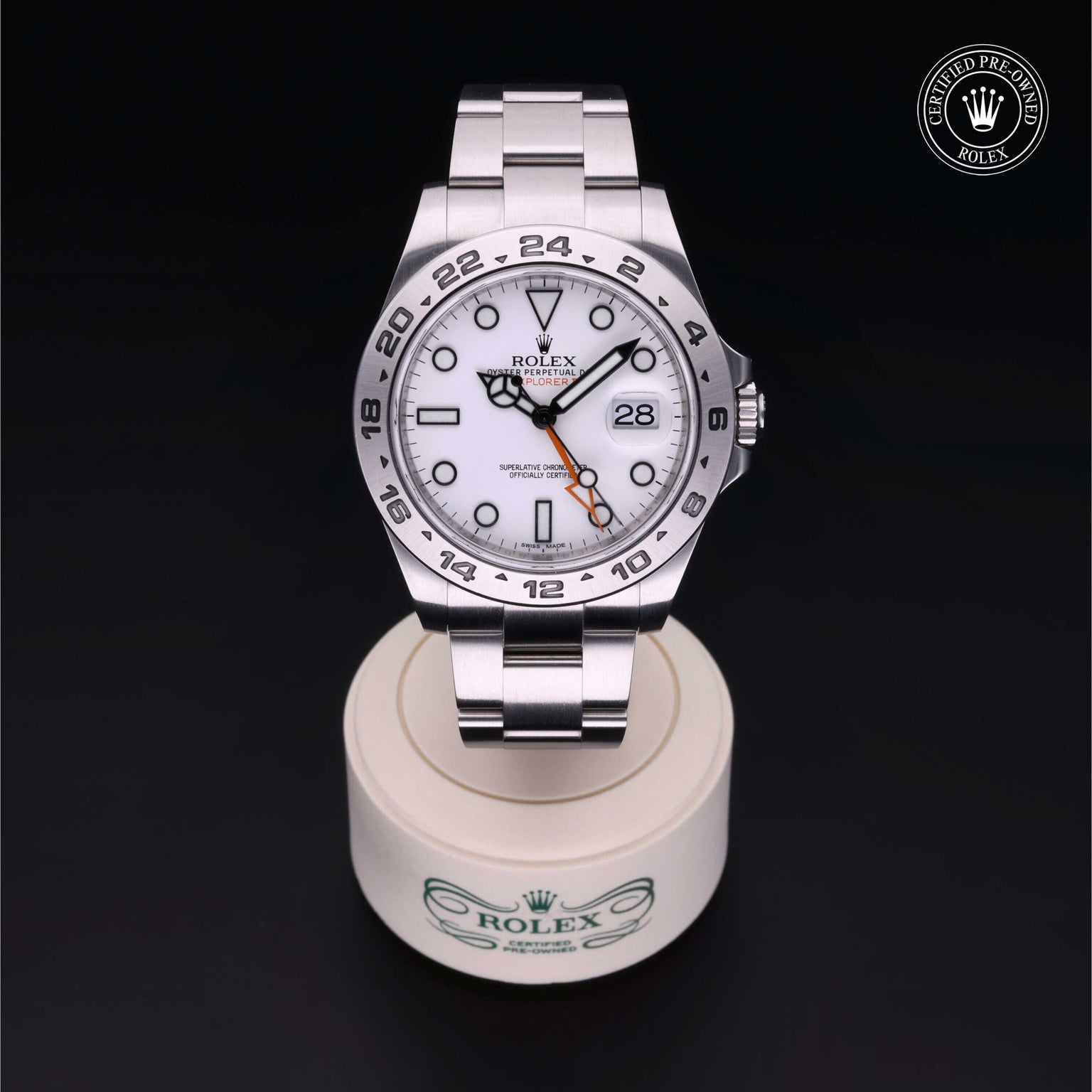 Rolex Certified Pre-owned Explorer II M216570-0001 front on black background