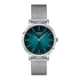 The Tissot Everytime wristwatch features a green gradient dial, silver hour markers, and a silver mesh band—an ideal classic or stylish choice, shown on a white background.