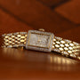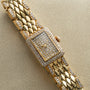 This particular Tank is an extraordinary ladies’ piece from circa the 2000s. It features a striking 19mm yellow gold case - encrusted with factory-set diamonds, a mineral crystal, a sapphire cabochon crown, and a stunning diamond encrusted dial with a matching 18K yellow gold 'sword' handset. To top it all off, this piece is fitted to a 18K yellow gold bracelet with diamonds on its peripheries.