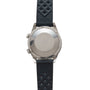 The design, a variation on the 'Tuxedo' dial, with an Art-Deco radial outer track and stylized 'Deep Sea Alarm Automatic' font, is visually striking and instantly draws your eyes. The luminous syringe handset, the fixed black bezel with luminous 12, 3, 6, 9 position markers, add pops of color. Then there is the bracelet. What a bracelet it is! The Longines 'Nautilus' bracelet is a 5-link 'beads-of-rice' with pyramid shaped outer links that showcases both mastery of design and function. The clasp is ratcheting with a built-in divers extension and it is as special and unique as the watch it is on.