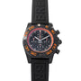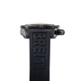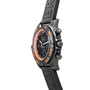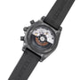With its 44mm 'blacksteel' case and matching rubber strap, this watch is surprisingly well balanced and proportioned for its size. Featuring a luminous black dial with matching handset, an orange inner tachymetre scale on the rehaut and matching orange accents on the chronograph hands and rotating timing bezel, this watch packs a a big punch in both the function and the looks department.