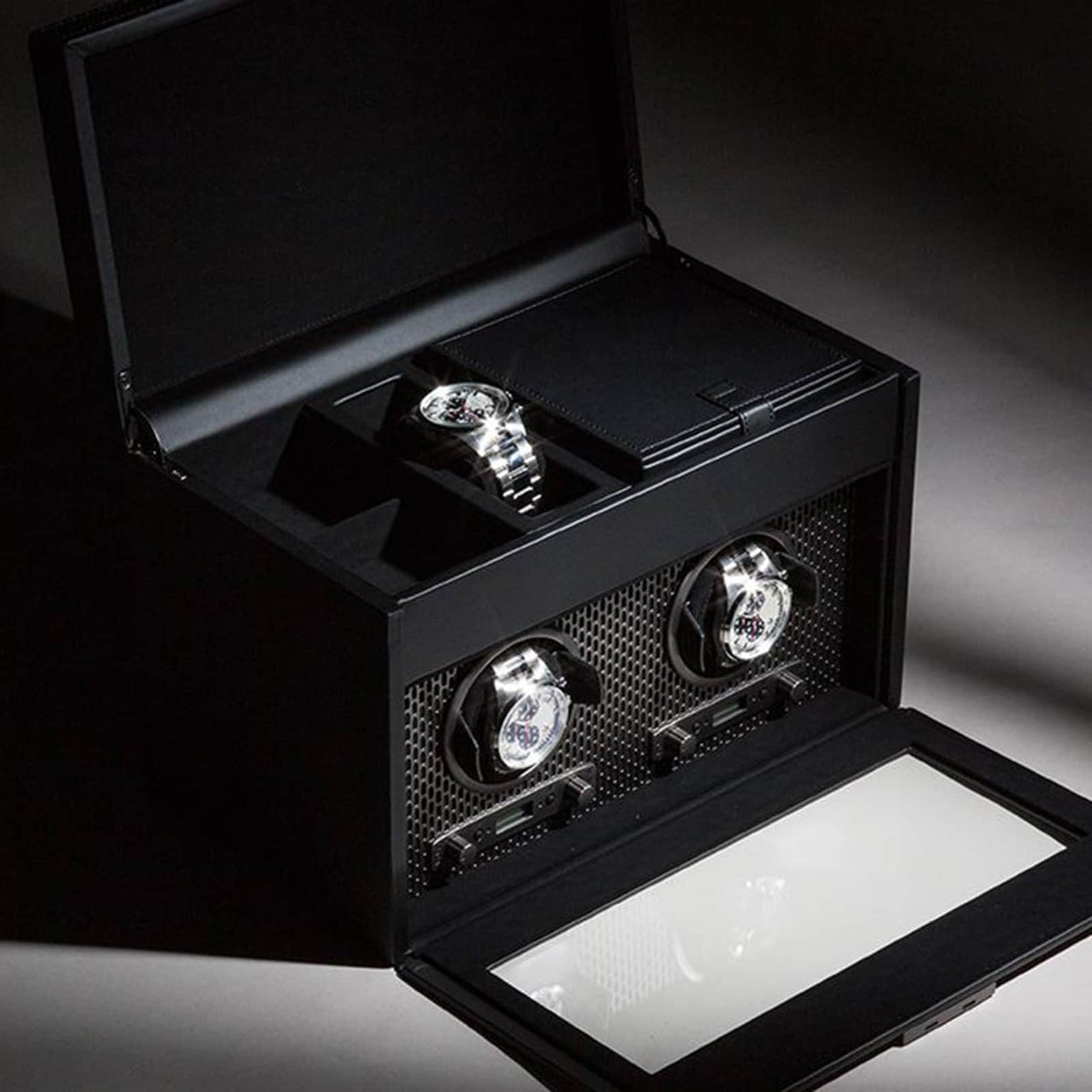 WOLF Axis Double Watch Winder With Storage
