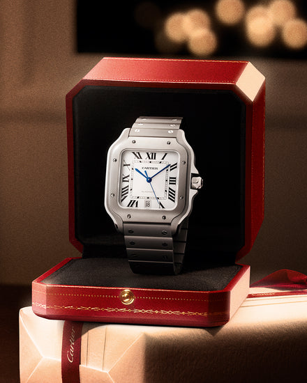 Originally crafted in 1904 to help aviators tell time mid-flight, this pioneering wristwatch features a geometric dial and signature exposed screws.