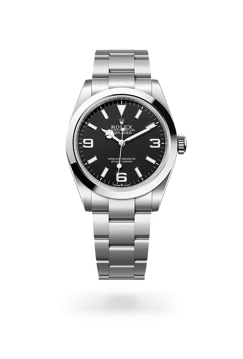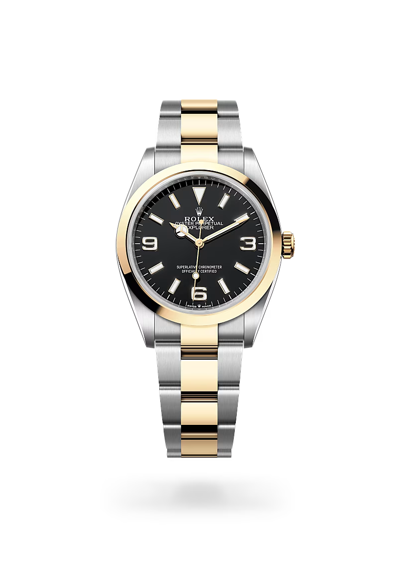 Watches in the Explorer range have constantly evolved to meet explorers’ needs, each time becoming more robust and reliable. The Explorer 36 is available in Oystersteel or in a yellow Rolesor version (combining Oystersteel and yellow gold), while the Explorer 40 and Explorer II are made exclusively in Oystersteel. Specially developed for Rolex, Oystersteel is a unique alloy with excellent anti-corrosion properties.