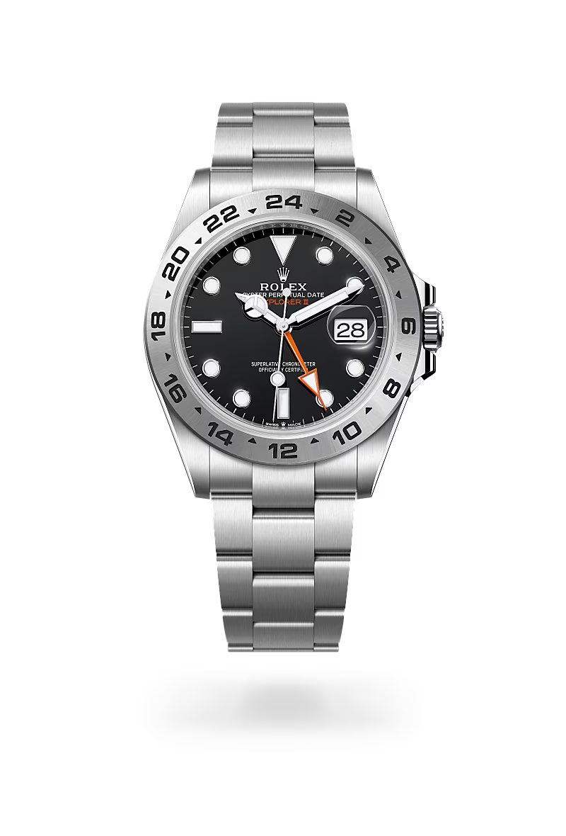 Like all Rolex watches, the Explorer and Explorer II are covered by the Superlative Chronometer certification. This designation testifies that every watch leaving the brand’s workshops has successfully undergone a series of tests conducted by Rolex in its own laboratories, according to its own criteria. The Superlative Chronometer status is symbolized by the green seal that comes with every Rolex watch and is coupled with an international five-year guarantee.