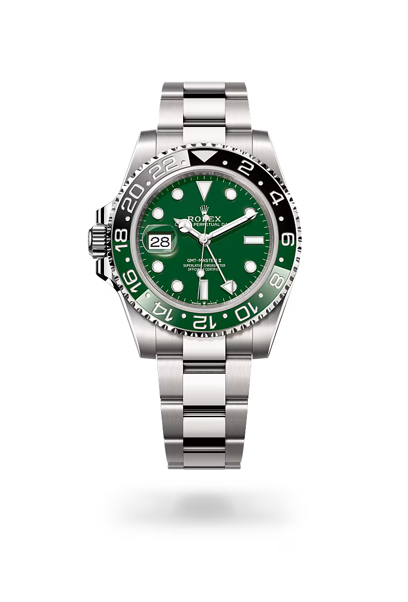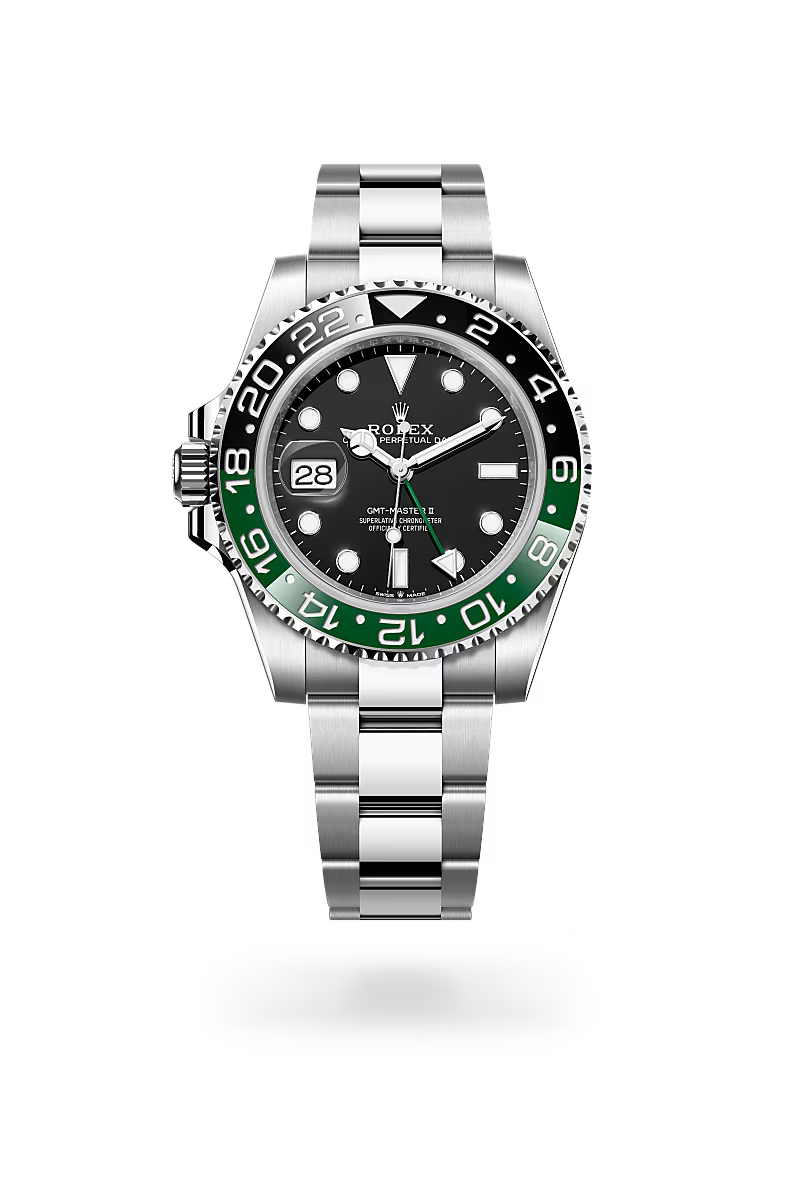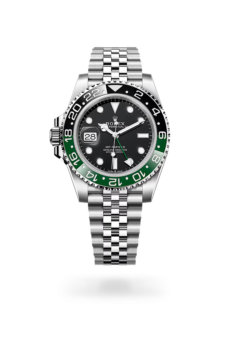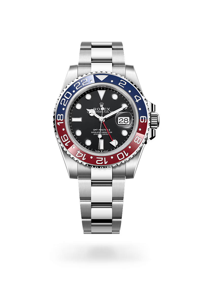 Like all Rolex watches, the GMT-Master II is covered by the Superlative Chronometer certification. This designation testifies that every watch leaving the brand’s workshops has successfully undergone a series of tests conducted by Rolex in its own laboratories, according to its own criteria. The Superlative Chronometer status is symbolized by the green seal that comes with every Rolex watch and is coupled with an international five-year guarantee.