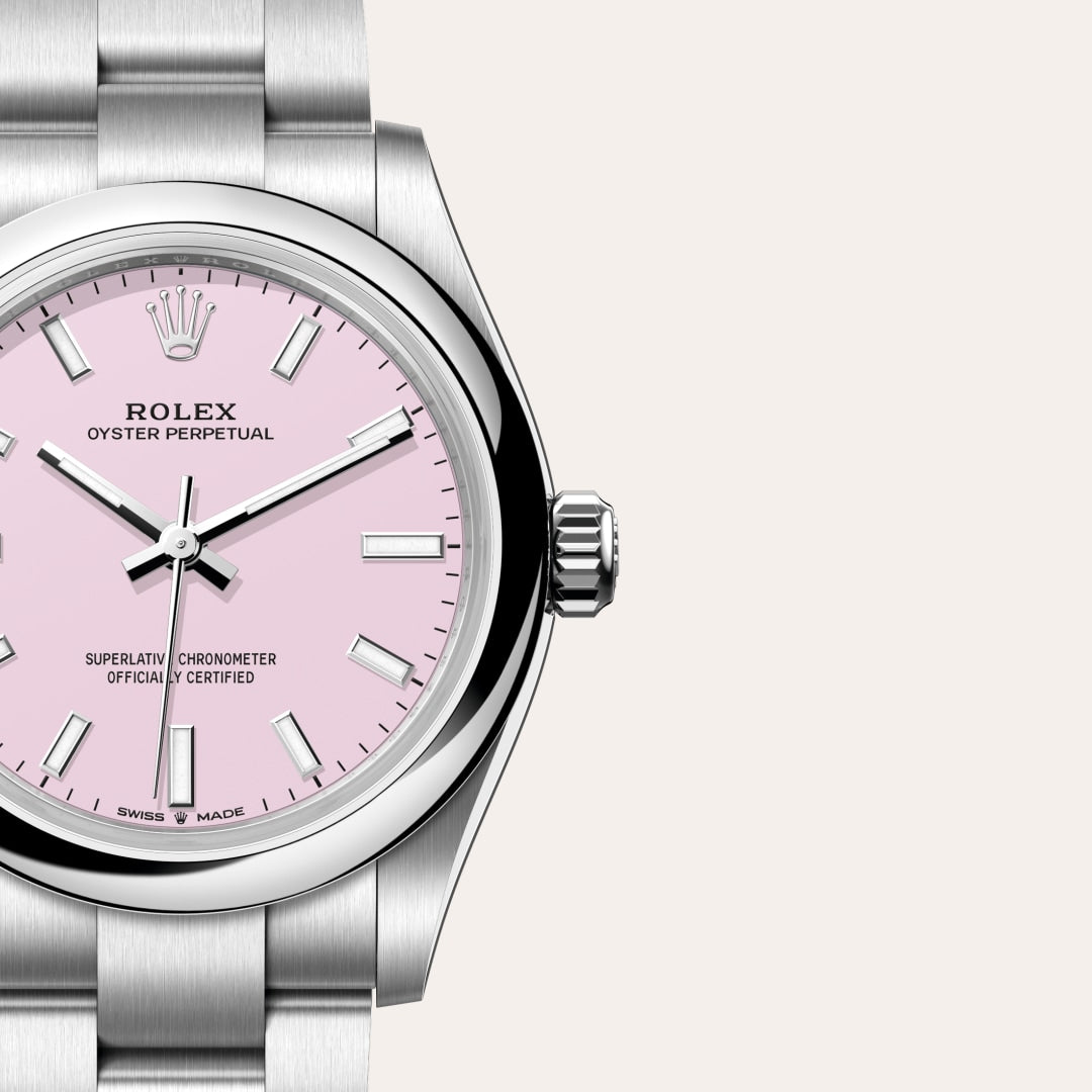 Rolex uses Oystersteel for its steel watch cases. Specially developed by the brand, Oystersteel belongs to the 904L steel family, alloys most commonly used in high-technology and in the aerospace and chemical industries, where maximum resistance to corrosion is essential. Oystersteel is extremely resistant, offers an exceptional finish once polished and maintains its beauty even in the harshest environments.