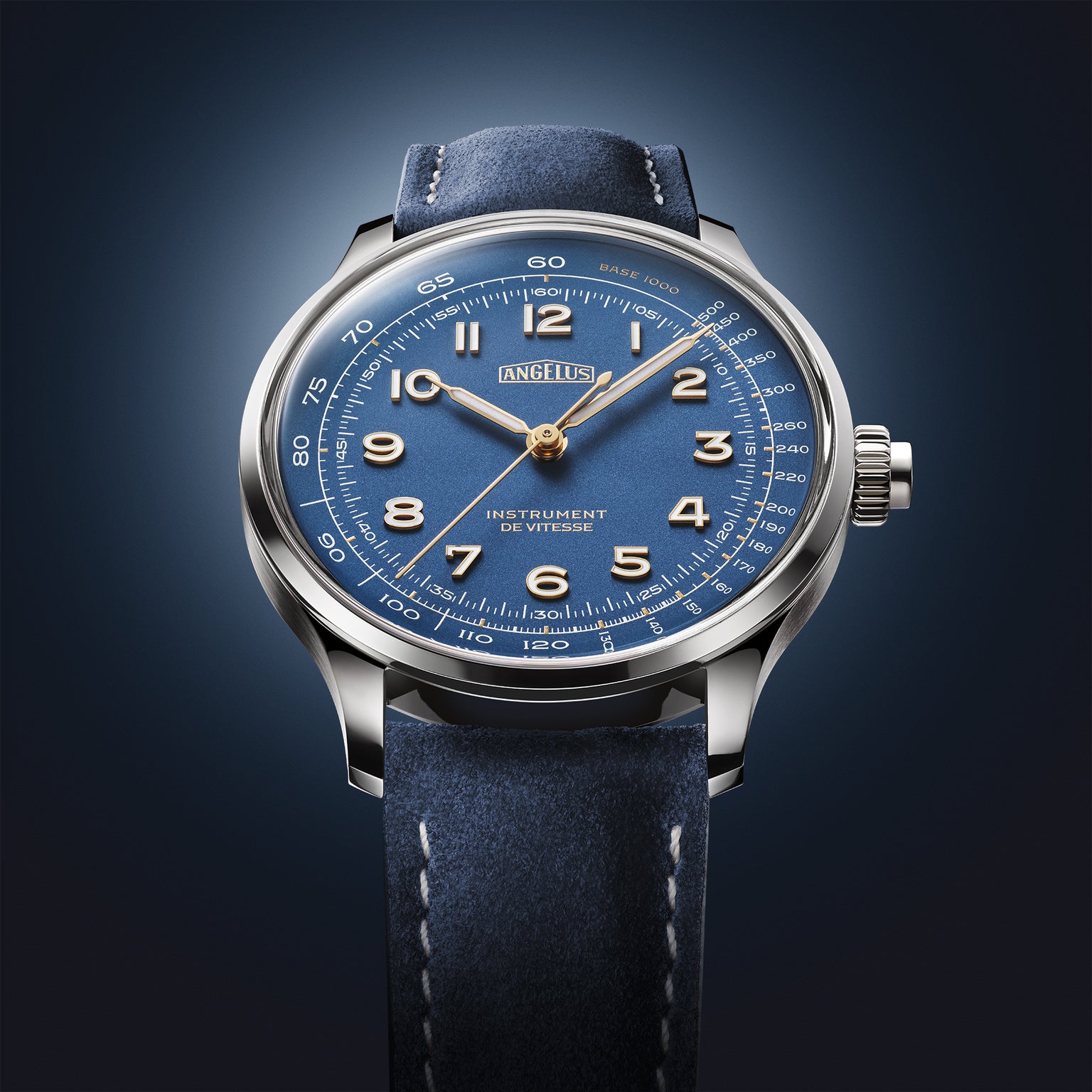 Elevate your style with Instrument de Vitesse's vintage-inspired, pure expression of a chronograph. Say goodbye to sub-counters and embrace the bold blue of the Indianapolis dial. The finely printed tachymeter scale adds functionality and speed, reminiscent of a dashboard instrument.
