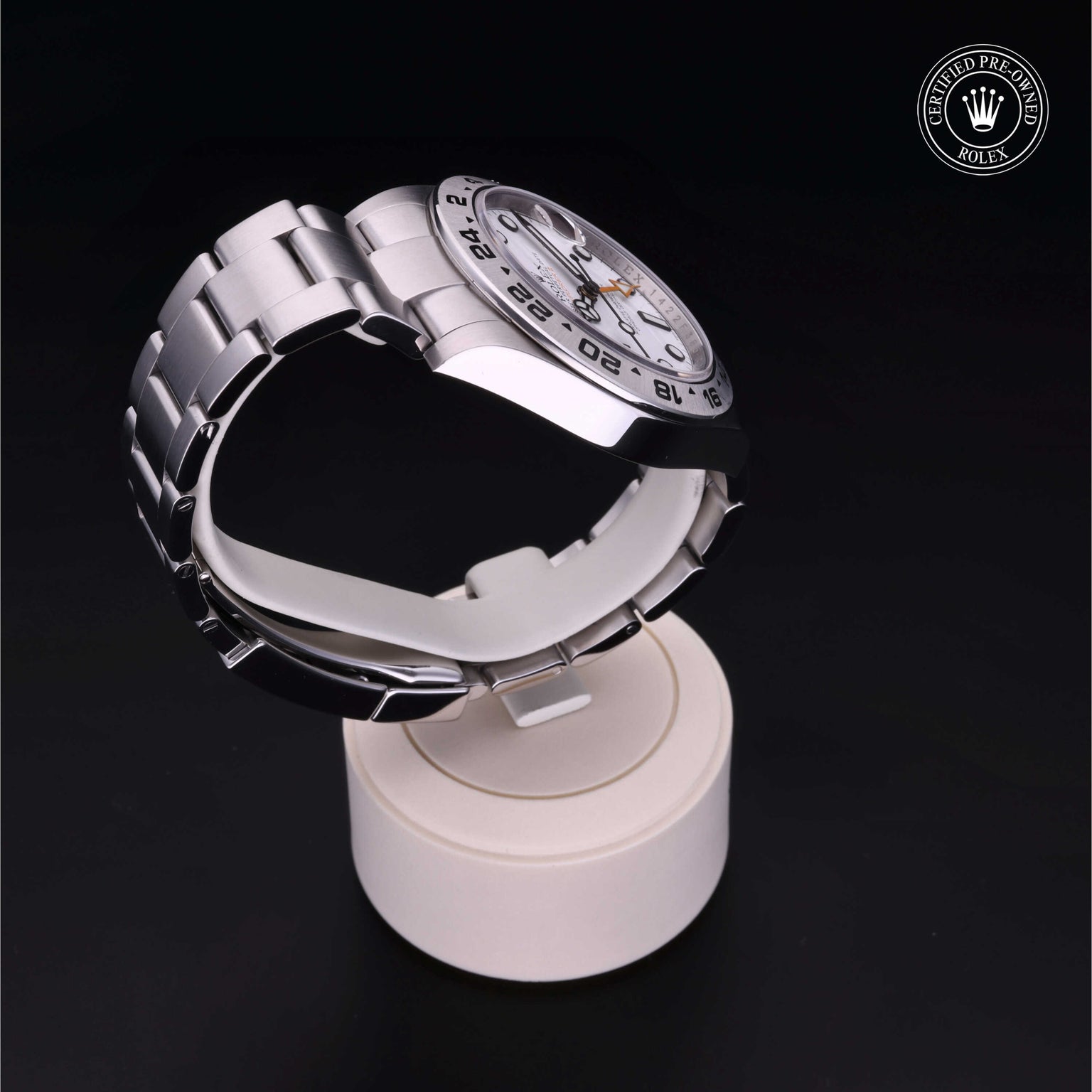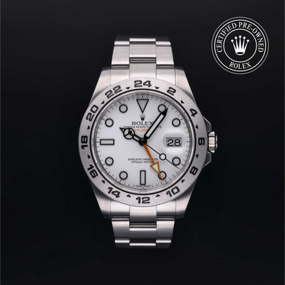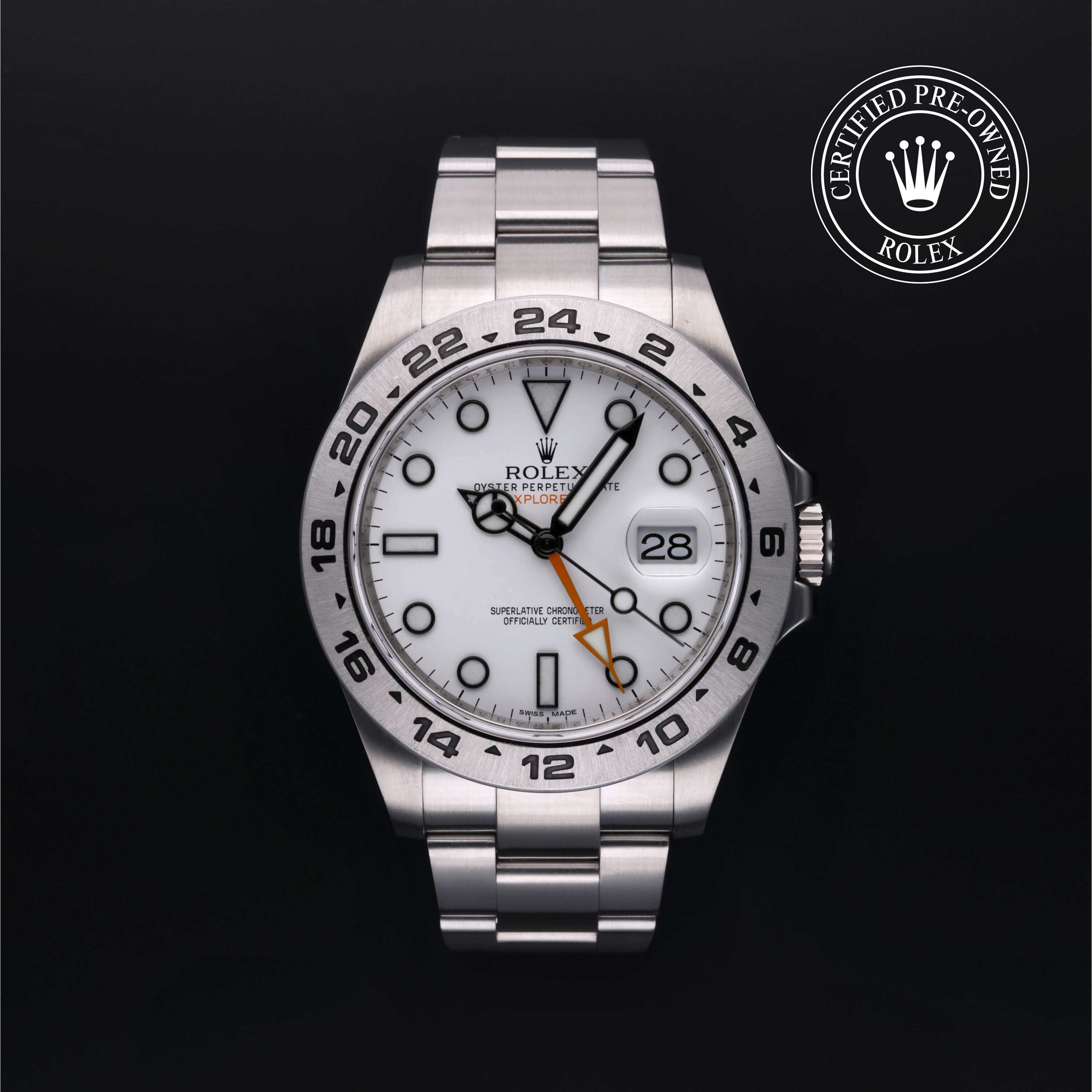 Rolex Certified Pre-owned Explorer M216570-0001 front on black background