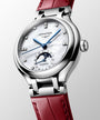 The crown itself becomes a poetic statement – its bubble-like form evokes the full moon while engravings of lunar crescents encircle its surface, creating a tactile connection to the celestial complication within.