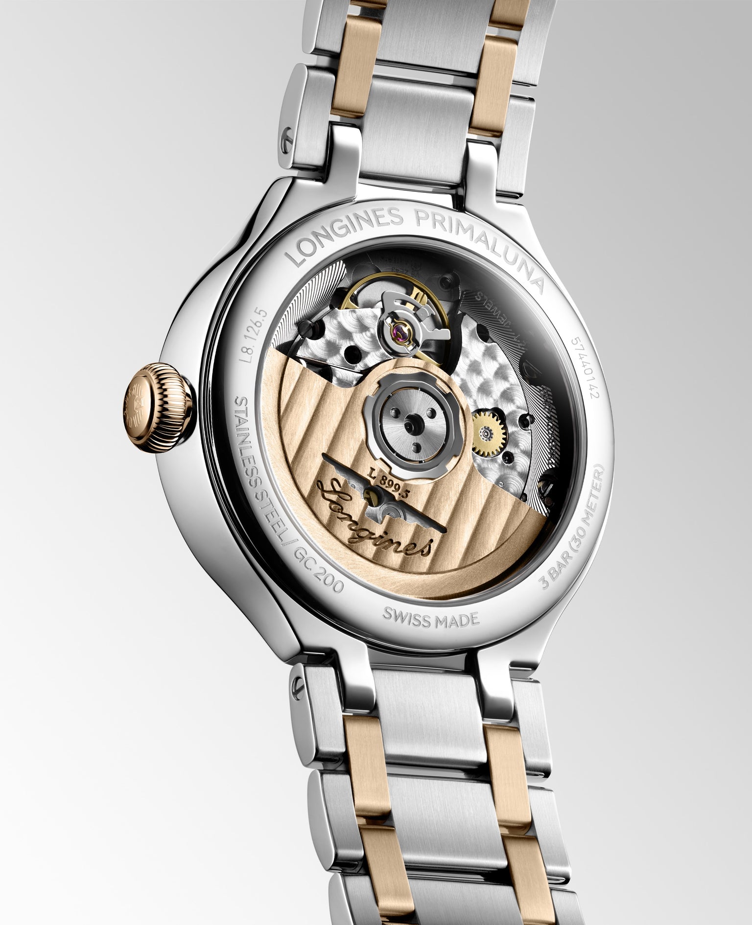This watch features a reimagined 34-mm stainless steel with 5N 18ct rose gold cap case and it has a classic sunray silver dial with black painted Roman numerals.