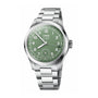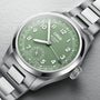 The Oris Big Crown Pointer Date Calibre 403 is a stainless steel wristwatch with a green dial, white numerals, and date indicator, showcasing Swiss craftsmanship and the signature Calibre 403 movement.