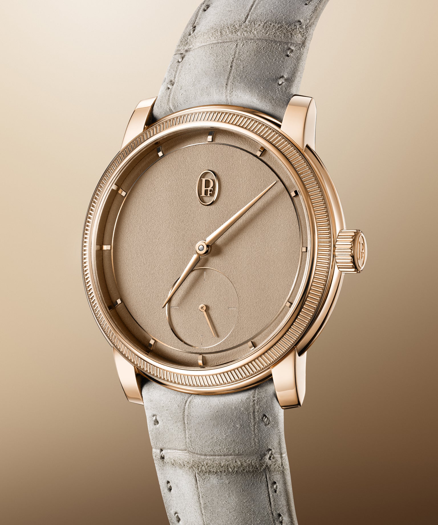Encased in 18ct rose gold, this timepiece features a hand-grained solid gold dial paired with a “Sand Gold” nubuck alligator leather strap, hand-stitched punto a mano. Its gentle, sunlit tones evoke warmth and sophistication. The TOR IC Petite Seconde transforms traditional dress watch design through perfect balance, presence, and subtle elegance. Reflecting Parmi giani Fleurier’s commitment to refined grace, this watch harmonizes form, function, and purpose. Drawing inspiration from Doric harm ony, it presents a streamlined silhouette where every detail matters and excess is eliminated.