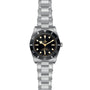The TUDOR Black Bay 54 is a stainless steel wristwatch with a black dial and bezel, luminous markers, and a metal bracelet.